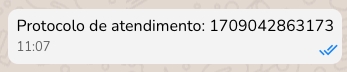 Clicando em Enviar, um número aleatório será gerado e enviado na conversa antecedido da frase: "Protocolo de atendimento".